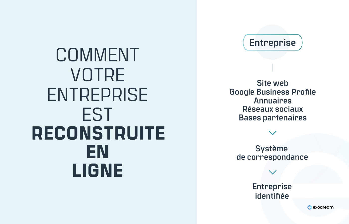 Les moteurs de recherche et les systèmes d’IA (ChatGPT, Gemini, Perplexity,...) reconstruisent une entreprise à partir de plusieurs sources :