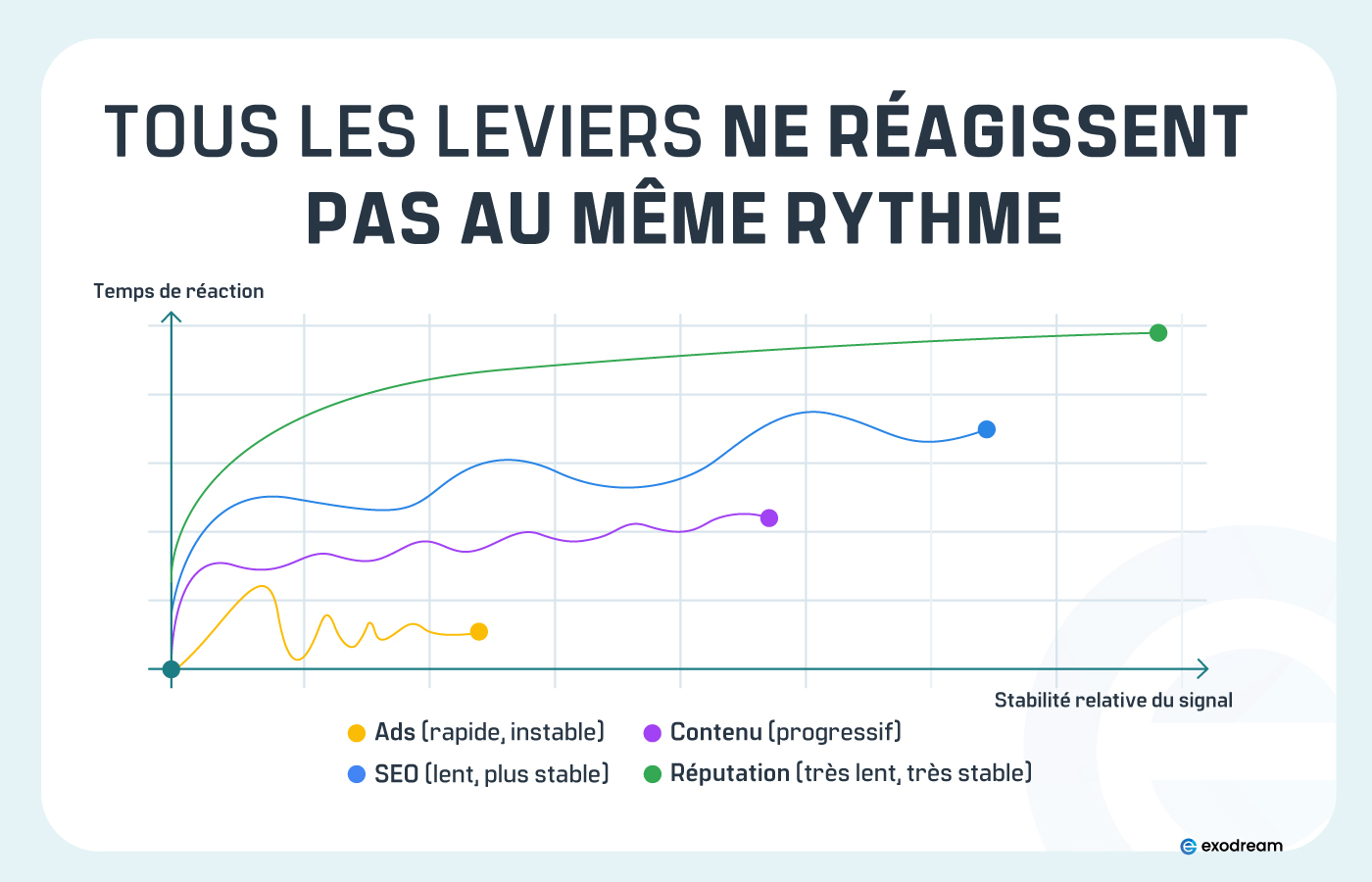 D’autres prennent plus de temps, comme le SEO, la réputation ou la crédibilité.