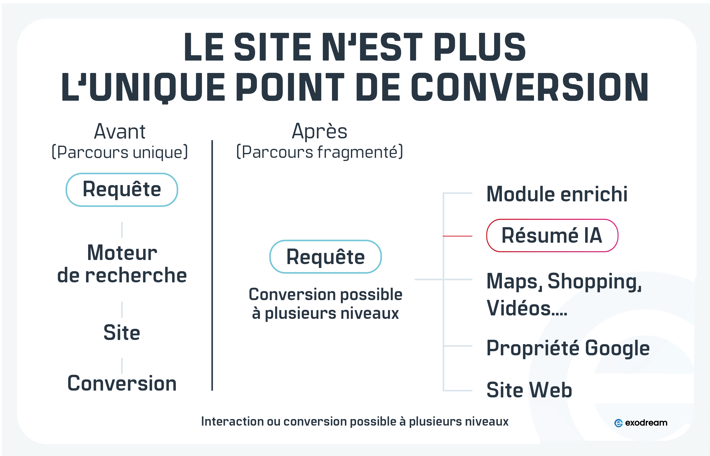 Les indicateurs traditionnels (clics, sessions) décrivent la navigation vers le site. L’environnement actuel exige également une lecture de l’exposition globale dans les interfaces des moteurs de recherche.